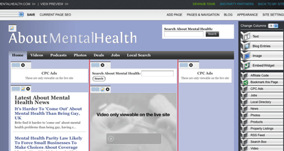 I haven’t done much editing of the site in this picture since it was an EvoLanding site. You can see, for example, that the “news” is called the “Latest About Mental Health News.” One quick change and this becomes “The Latest Mental Health News” – much more logical. With EvoLanding this was impossible to change. With DevHub it is a snap.